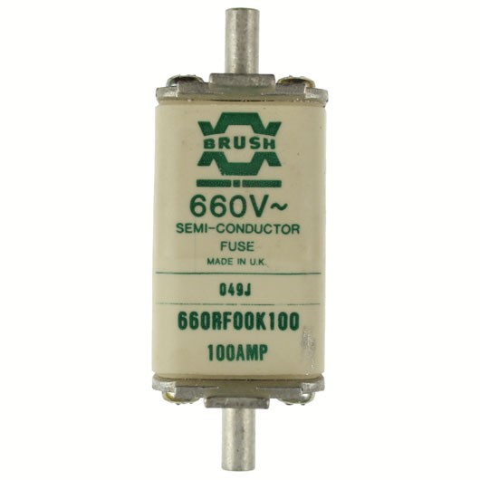 European Semiconductor protection fuse to DIN dimensions, Size 00, 660 Volts, Fast acting, knife blade contacts to DIN 43620, No Lug, 100 Amp