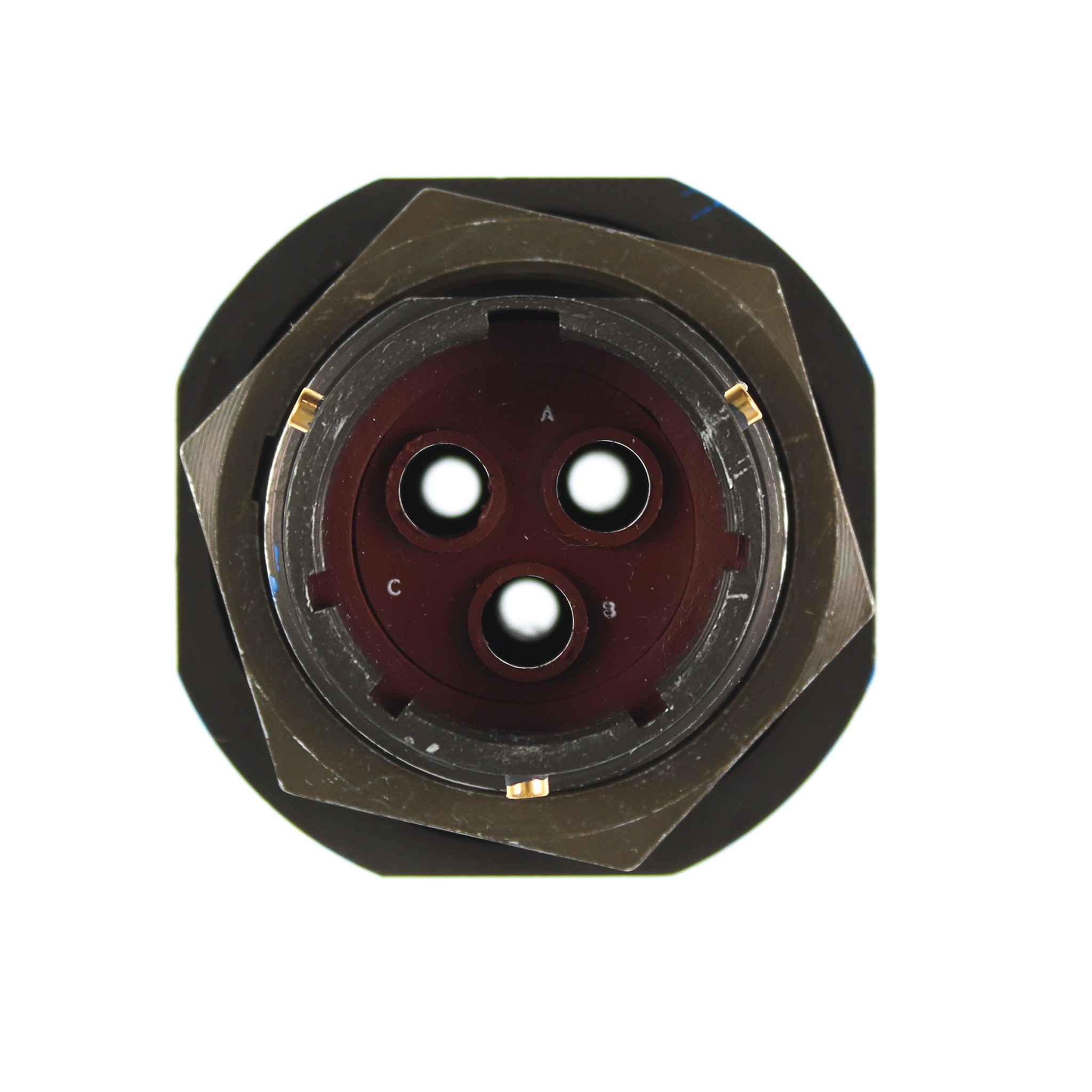Jam nut receptacle, Bayonet locking, aluminium shell, cadmium olive drab finish,3 way(3xsize 10 databus),crimp, pins