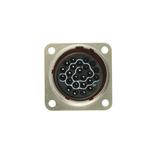 Wall mount receptacle, Threaded locking, Aluminiuml shell, Electroless nickel finish, Keyway position 8, 24-way (24x Size 20awg), Rear release Cimp Contacts,Female (Socket), MIL-DTL-83723 Series III