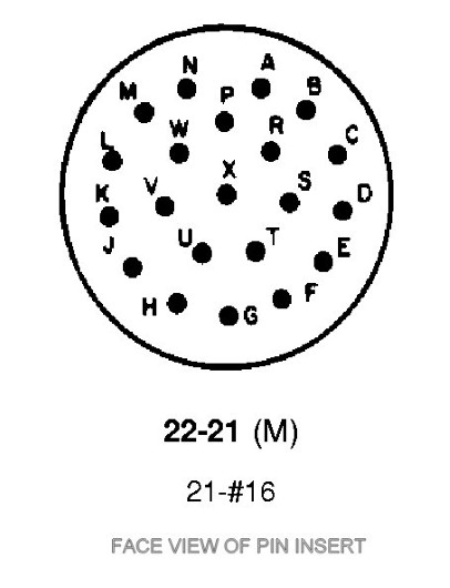 MIL-DTL-26482 Series II, Bayonet Locking, Straight plug with saddle clamp, Aluminum shell, Olive drab cadmium over electroless nickel base, Shell size 22, Insert arrangement 22-21 (21x Size 16 Contacts (16-20 AWG)), Rear Release Crimp, Female (Socket), Polarization W.